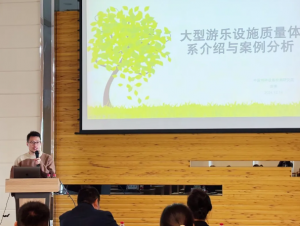 Wu Zuhong, Quality Assurance Engineer of Jinma Amusement, introduced the quality assurance system of Jinma Amusement and showed the quality control process of the whole life cycle of Jinma Amusement products, which provided the peers here with an effective model of product safety production and quality assurance.