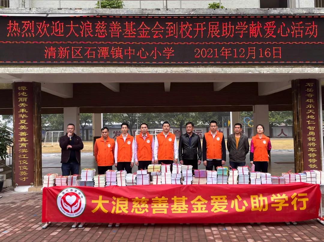On December 16, 2021, the Dalang Charity Foundation inherited the purpose of “helping students with love and building dreams” and organized members of the Foundation to visit Shitan Town Central Primary School in Qing Yuan City. In this activity, DaLang Charity Foundation donated 100 sets of adjustable study tables and chairs and 521 selected extracurricular reading books. Deputy Secretary of Party Committee of Shitan Town Government, Head of Vocational Education Section of Municipal Education Bureau, Head of Task Force in town An Peng, Principal of Shitan Town Central Primary School Li Guangjun, Chairman of Dalang Charity Foundation Zhao Shiyang, Vice Chairman of Dalang Charity Foundation Yang Ping and other government, school and foundation leaders and many loving people participated in the activity.
