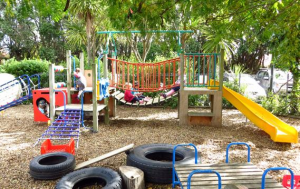 Moreover, the park is full of rest places, picnic benches, park benches, even old tree stumps, etc. You could sit down and rest before you go for a walk or play again. It’s the same logic when it turns to the courtyard. You need to consider adding some comfortable space for resting, such as a children’s picnic table or park bench, to make the area exciting and relaxing.