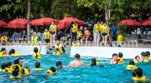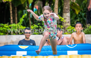 - 7-10 years old: participation is the key, for example, small water slide and water log;