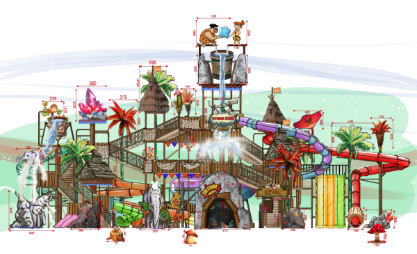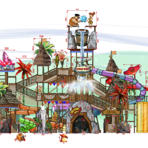 The cartoon characters are vivid and interesting, creating a charming tropical rainforest adventure game atmosphere. Among them, there are water spray playing equipment all over the corners, attracting people to continue to discover and experience.