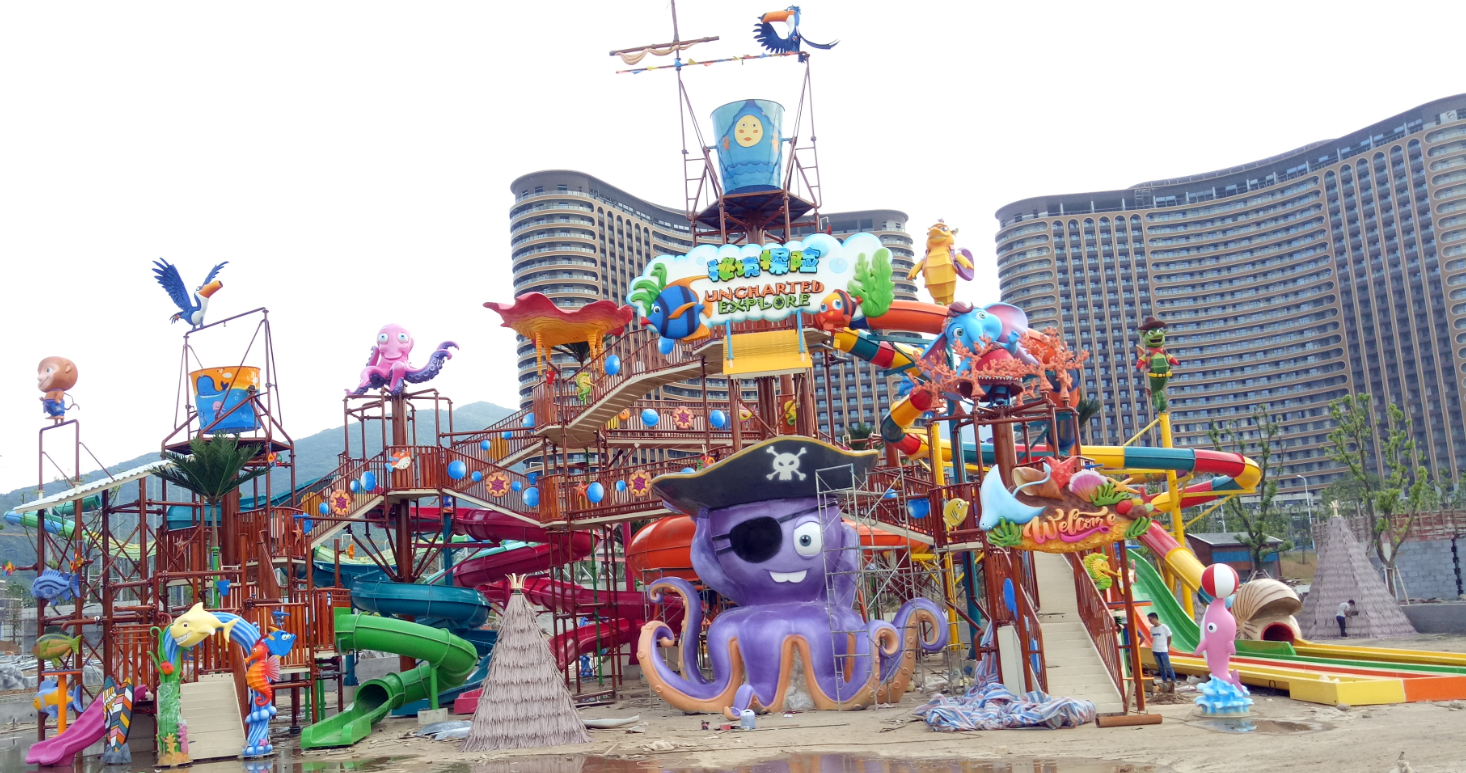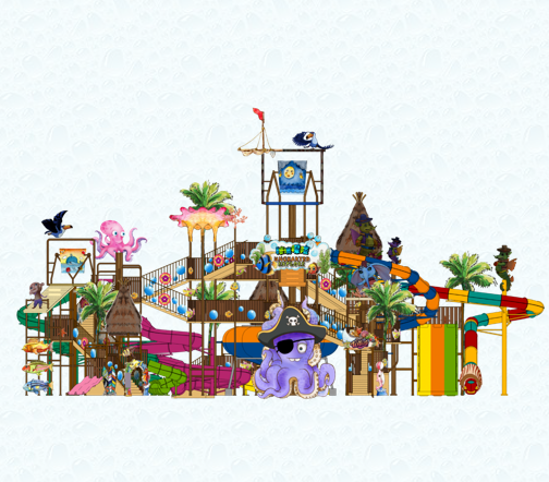 The cartoon characters are vivid and interesting, creating a charming tropical rainforest adventure game atmosphere. Among them, there are water spray playing equipment all over the corners, attracting people to continue to discover and experience.