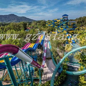 The Multi-lane rainbow water slide is a slide designed for water parks, aiming to provide multiple simultaneous sliding experiences to meet visitors’ pursuit of speed and fun.